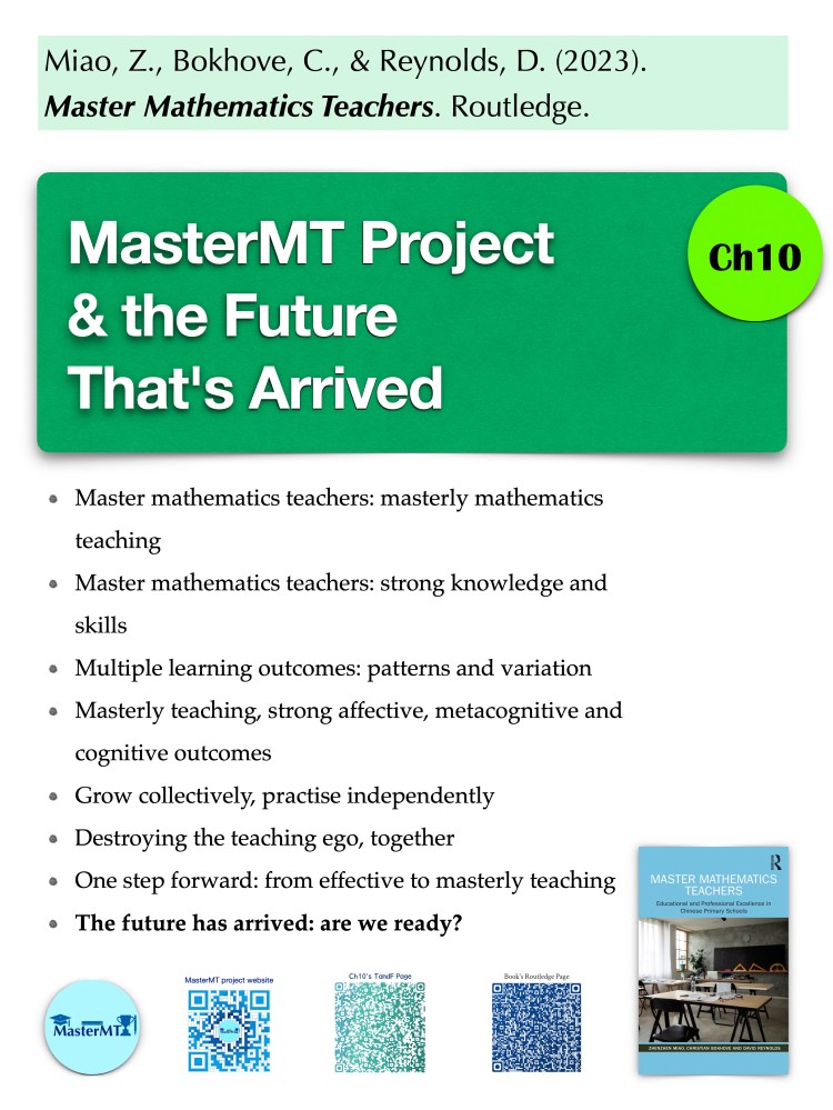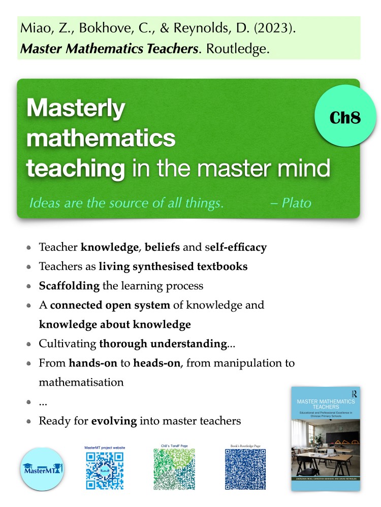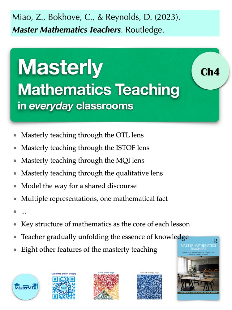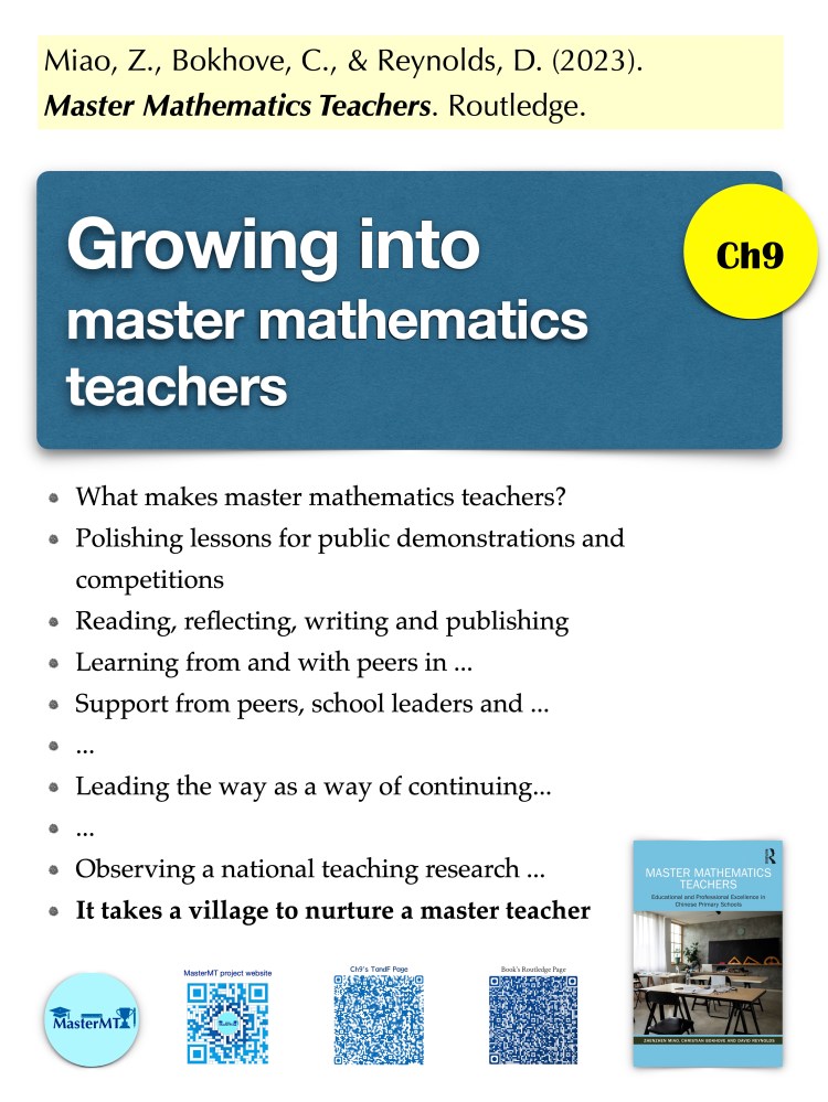 Miao, Z., Bokhove, C., & Reynolds, D. (2024). Master mathematics teachers: Educational and professional excellence in Chinese primary schools. Routledge.