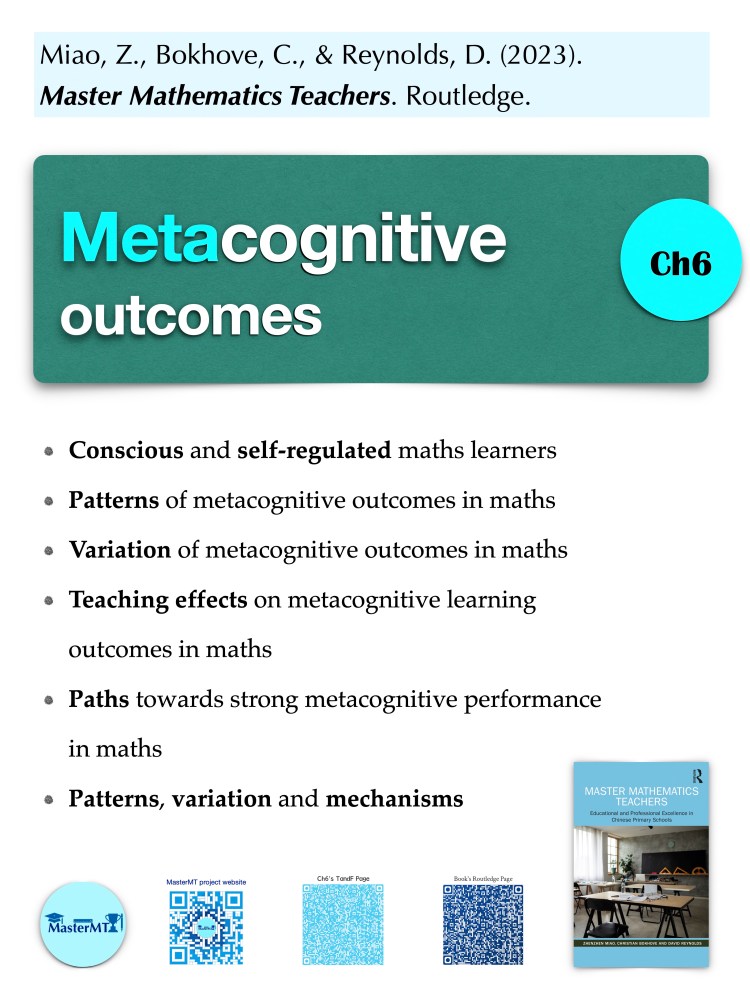 Miao, Z., Bokhove, C., Charalambous, C. Y., & Reynolds, D. (2024, July 7-14). The relationship between metacognition and mathematics achievement: Quality of reasoning as a mediator [Extended paper presentation]. The 15th International Congress on Mathematics Education (ICME), Sydney, Australia.